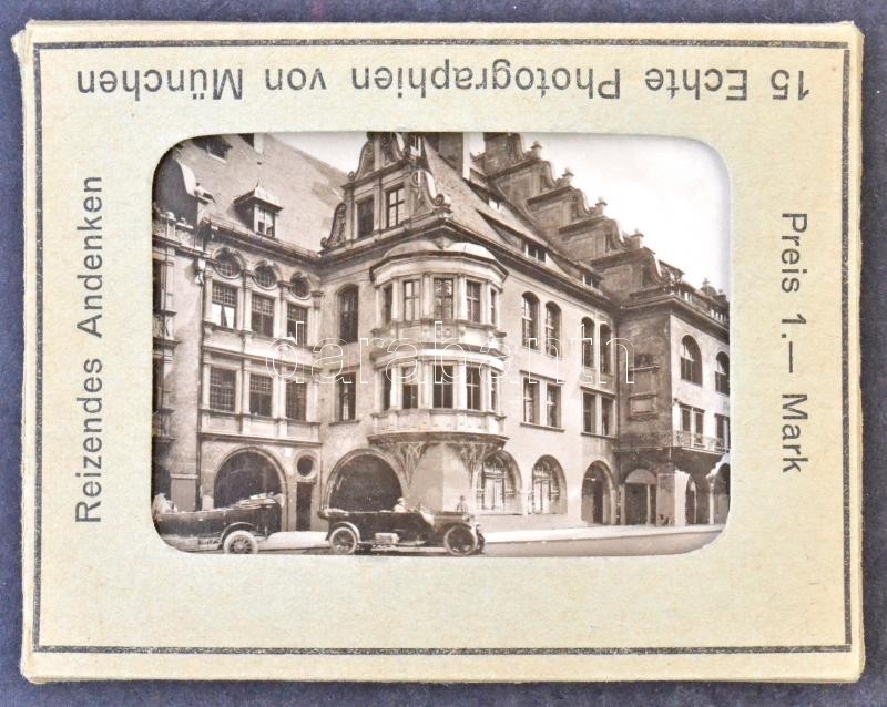 Beschreibung: Dózsa György szivardoboz, benne München és Herrenchiemsee 15 ill. 12 darabos városképes fotósorozat