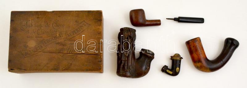 Vegyes pipa tétel, 4 db + 1 db szipka, régi fa dobozban https://www.darabanth.com/de/321-Fernauktion/321.0/Andere-Sammelgebiete/Flohmarkt~500011/Vegyes-pipa-tetel-4-db-plus-1-db-szipka-regi-fa-dobozban~II1778399