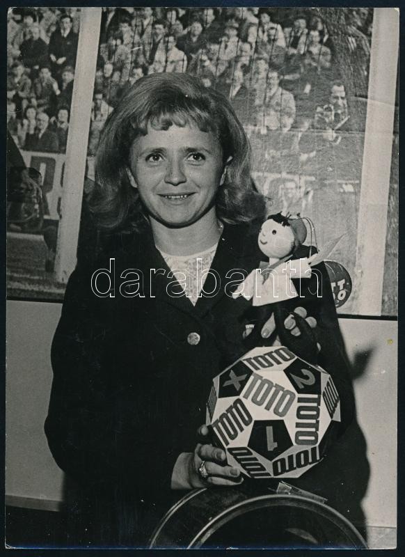 cca 1970 Antal Márta olimpiai ezüstérmes gerelyhajító Totó reklámfigur... https://www.darabanth.com/de/321-Fernauktion/321.0/Andere-Sammelgebiete/Foto~500020/cca-1970-Antal-Marta-olimpiai-ezustermes-gerelyhajito-Toto-reklamfiguraval-18x13-cm~II1775577