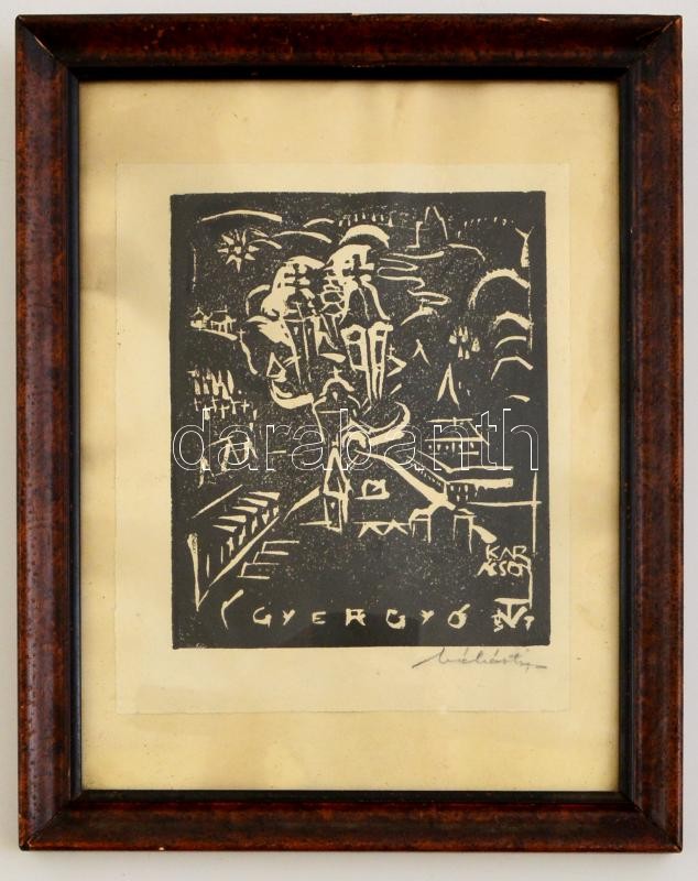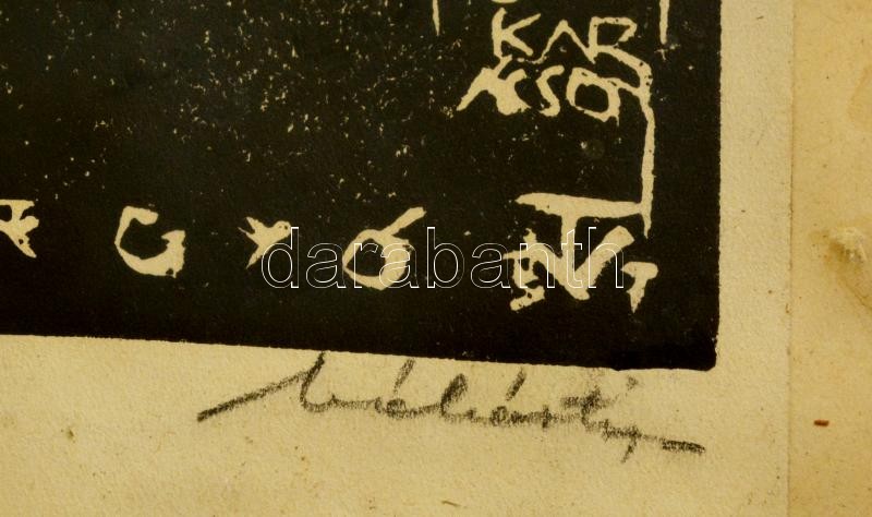 Beschreibung: Olvashatatlan jelzéssel: Gyergyószentmiklós. Linó, papír, üvegezett keretben, 15×12 cm