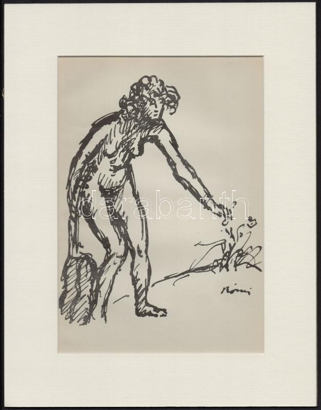 Beschreibung: Rippl-Rónai József (1861-1927): Virágot szedő akt. Cinkográfia, papír, jelzett a cinkográfián, paszpartuban, 16×23,5 cm