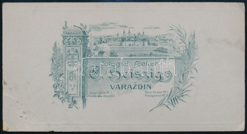 cca 1900 Várady Albert (1870-?) huszár százados, később ezredes, a m. kir. varasdi 10. honvéd huszárezredből, keményhátú fotó, E. Heiszig, Varasd, a fotó hátoldalán Varasd látképével, 16x8 cm./ cca 1900 Albert Várady hussar captain, later colonel, from the 10th Varazdin Honved Hussars, board photo, E. Heiszig, Varazdin, with view of Varazdin on the back, 16x8 cm.