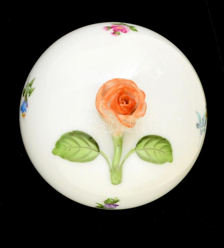 Beschreibung: Herendi rózsás bonbonier, kézzel festett, jelzett, hibátlan, eredeti dobozában, m:7,5 cm