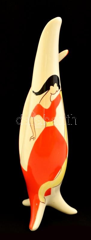 Beschreibung: Retró váza, kézzel festett táncosnővel, jelzés nélkül, kopott, m: 29,5 cm