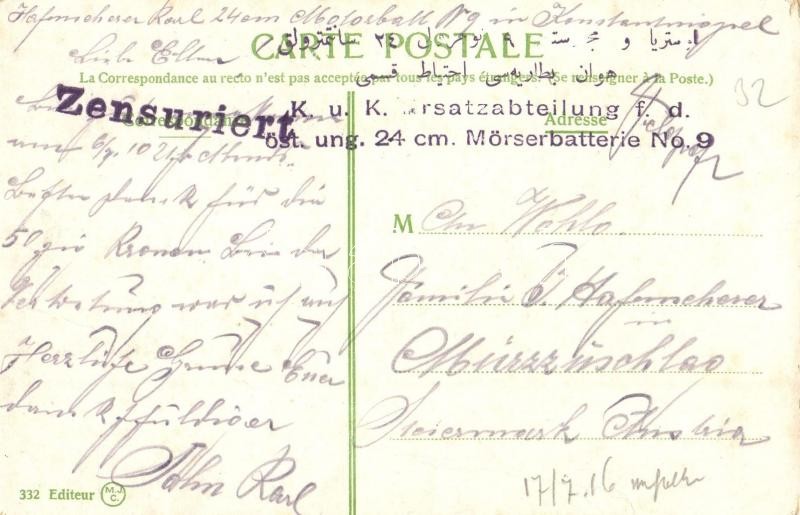 Beschreibung: Mehmed V Resad, The 35th and penultimate Ottoman Sultan + K.u.K. Ersatzabteilung f. d. öst. ung. 24 cm. Mörserbatterie No. 9. (fa)