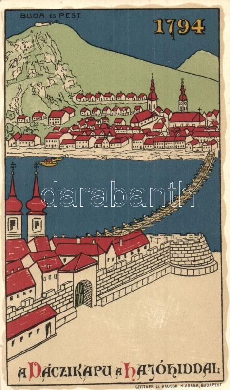 Budapest, Buda és Pest, Váci kapu a hajóhíddal. Anno 1794. Geittner és... https://www.darabanth.com/de/321-Fernauktion/321.0/Ansichtskarten/Ungarn~1500007/Budapest-Buda-es-Pest-Vaci-kapu-a-hajohiddal-Anno-1794-Geittner-es-Rausch-kiadasa-muves~II1782216