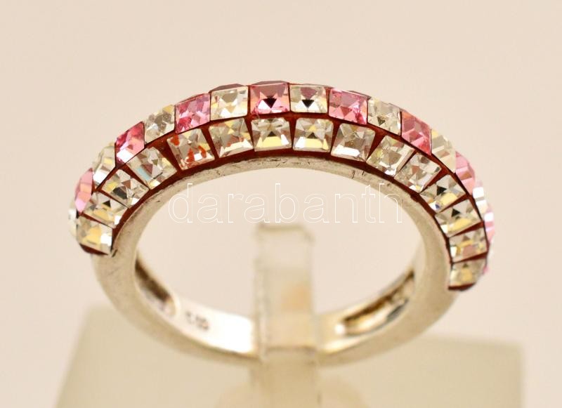 Beschreibung: Ezüst(Ag) piros-fehér-rózsaszín köves gyűrű, jelzett, méret: 50, bruttó: 3,4 g