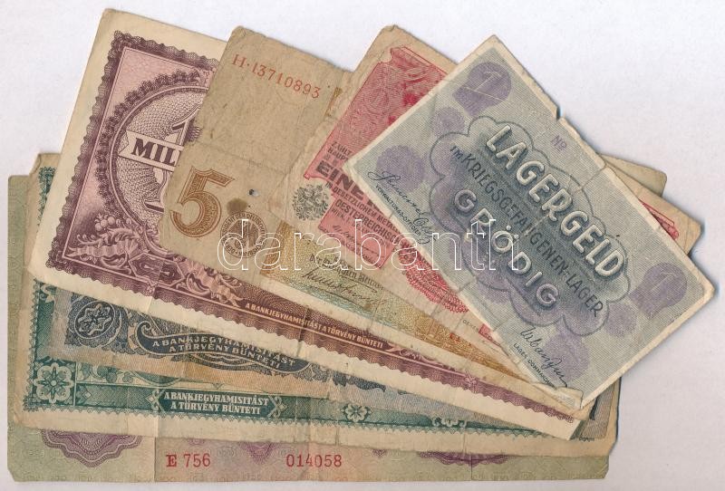 7db-os vegyes bankjegy és hadifogolytábor pénz tétel T:III-,IV https://www.darabanth.com/de/321-Fernauktion/321.0/Numismatik/Gemischt-Lose-Banknoten-und-Munzen~2500019/7db-os-vegyes-bankjegy-es-hadifogolytabor-penz-tetel-TIII-IV~II1781847