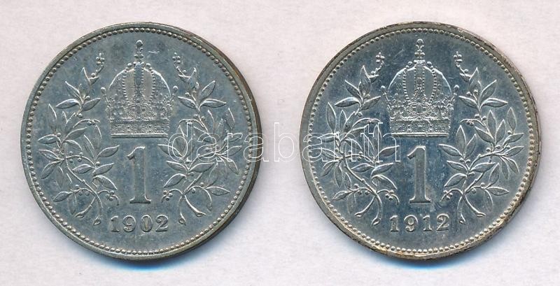 Beschreibung: Ausztria 1902-1912. 1K Ag "Ferenc József" (2x) T:2,2- patina Austria 1902-1912. 1 Corona Ag "Franz Joseph" (2x) C:XF,VF patina