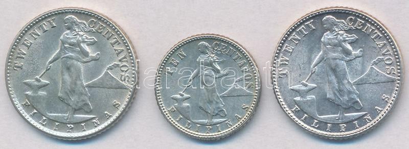 Fülöp-szigetek / Amerikai Egyesült Államok Közigazgatás 1944D 10c Ag + 20c Ag + 1945D 20c Ag T:1,1-