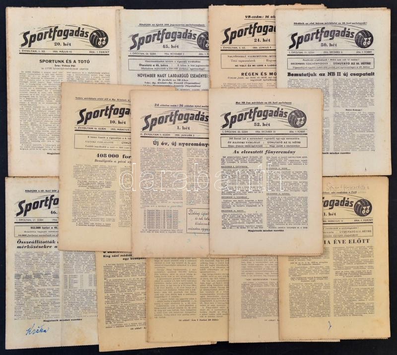 1954-1957 Sportfogadás 12 száma, közte I. évf. 1.,2. és 5. számai is. https://www.darabanth.com/de/322-Fernauktion/322.0/Andere-Sammelgebiete/Drucksachen~500032/1954-1957-Sportfogadas-12-szama-kozte-I-evf-1-2-es-5-szamai-is~II1786385