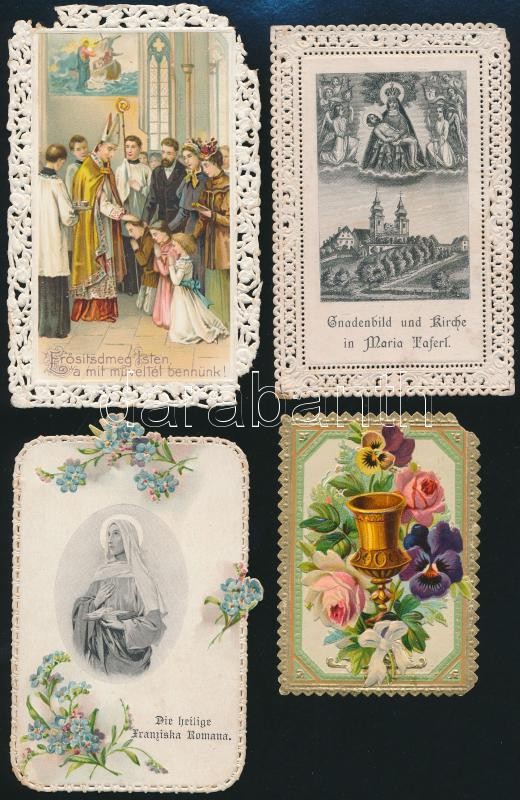 Beschreibung: cca 1900-1913 4 db csipkés, litho és dombornyomott szentkép, sérülésekkel