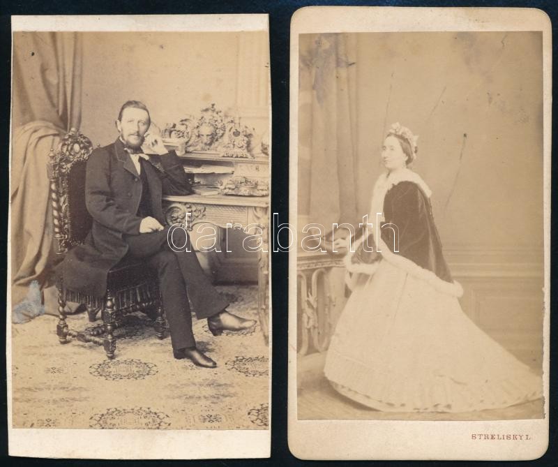 Beschreibung: cca 1858 Mayer Gy. és Strelisky L. pesti műterméből 2 db vizitkártya méretű fénykép, 10,5x6 cm