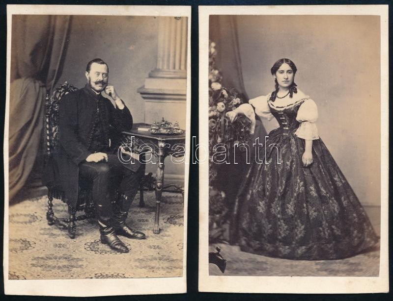 Beschreibung: cca 1858 Mayer György fényképíró pesti műterméből 2 db vizitkártya méretű fénykép, 10,5x6,5 cm