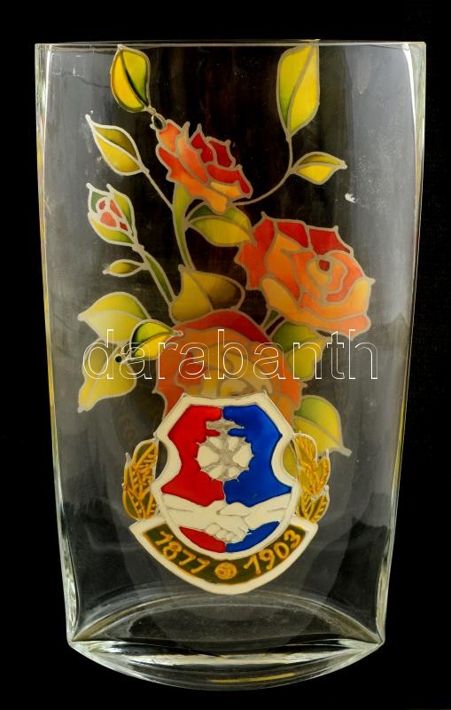 Kézzel festett üveg váza, apró csorbával, jelzés nélkül, m: 28,5 cm https://www.darabanth.com/de/322-Fernauktion/322.0/Andere-Sammelgebiete/Glaser~500008/Kezzel-festett-uveg-vaza-apro-csorbaval-jelzes-nelkul-m-28-5-cm~II1669722