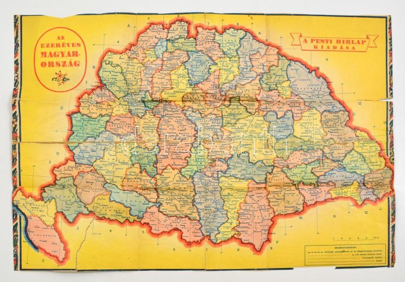 1938 Pesti Hírlap színes térképmelléklete: "Az ezeréves Magyarors... https://www.darabanth.com/de/322-Fernauktion/322.0/Andere-Sammelgebiete/Landkarten~500031/1938-Pesti-Hirlap-szines-terkepmelleklete-Az-ezereves-Magyarorszag-ill-hatoldalan-hat~II1754197