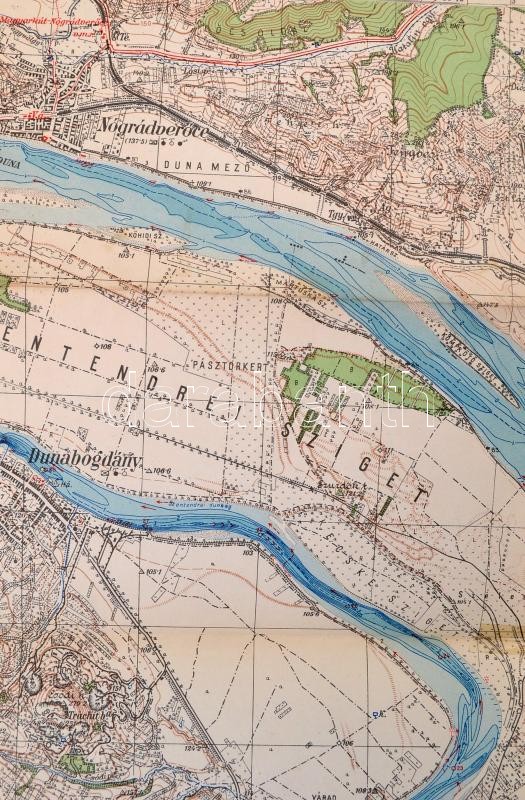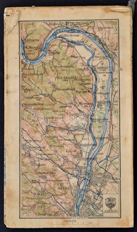 cca 1929 Vízisporttérképek: 5. sz., Duna Budapest-Vác, 33 km,1:25.000, Bp. M. Kir. Állami Térképészet, ragasztott, a hajtás mentén szakadásokkal, 42x165 cm