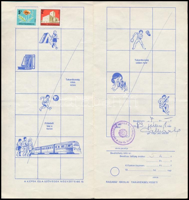 Beschreibung: 1983 Iskolai takarékbélyeg gyűjtőlap 2 db takarékbélyeggel