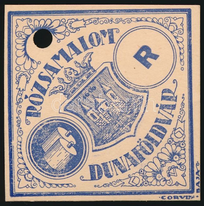 cca 1900 Liszteszsák zárjegy. Dunaföldvár. / Flour bag tax stamp https://www.darabanth.com/de/322-Fernauktion/322.0/Andere-Sammelgebiete/Paraphilatelie~500014/cca-1900-Liszteszsak-zarjegy-Dunafoldvar-Flour-bag-tax-stamp~II1783607