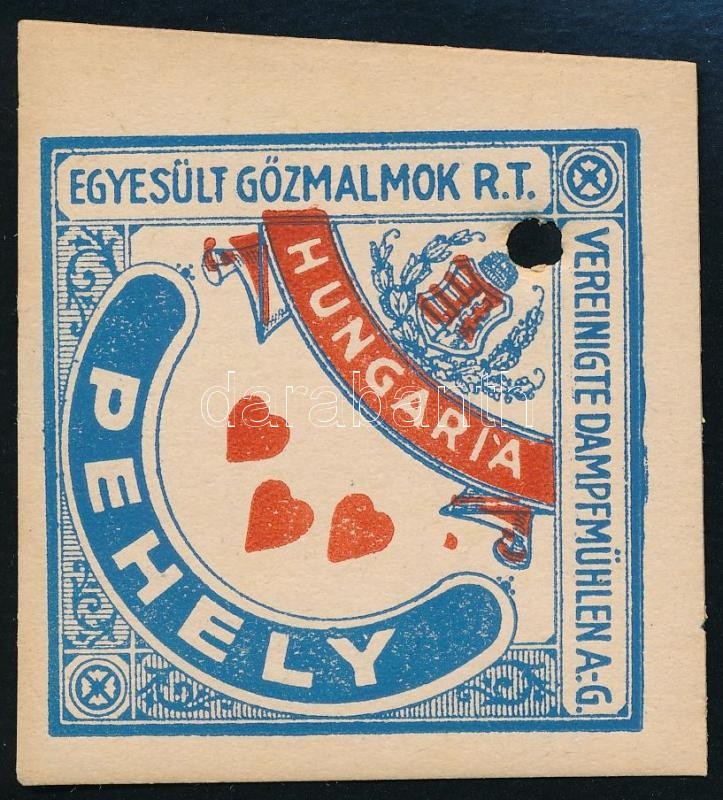 cca 1900 Liszteszsák zárjegy. Hungária. / Flour bag tax stamp https://www.darabanth.com/de/322-Fernauktion/322.0/Andere-Sammelgebiete/Paraphilatelie~500014/cca-1900-Liszteszsak-zarjegy-Hungaria-Flour-bag-tax-stamp~II1783631