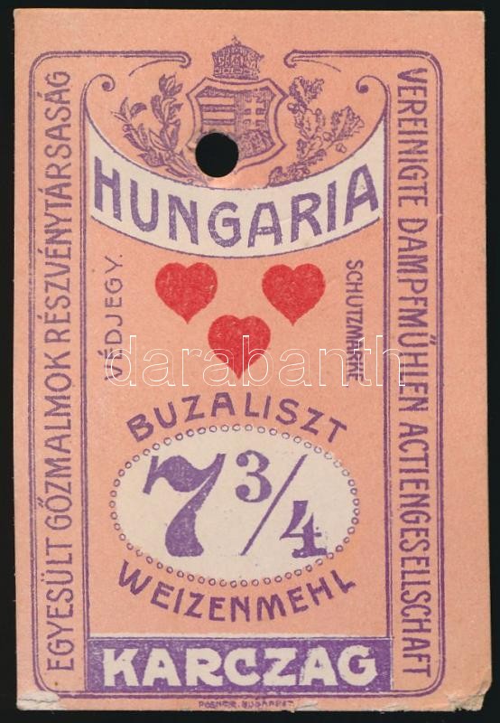 cca 1900 Liszteszsák zárjegy. Karcag, / Flour bag tax stamp https://www.darabanth.com/de/322-Fernauktion/322.0/Andere-Sammelgebiete/Paraphilatelie~500014/cca-1900-Liszteszsak-zarjegy-Karcag-Flour-bag-tax-stamp~II1783603