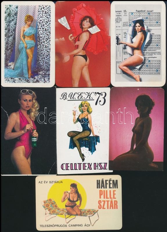 Beschreibung: 1968-1987 Csajos kártyanaptárak, közte erotikus is, 12 db