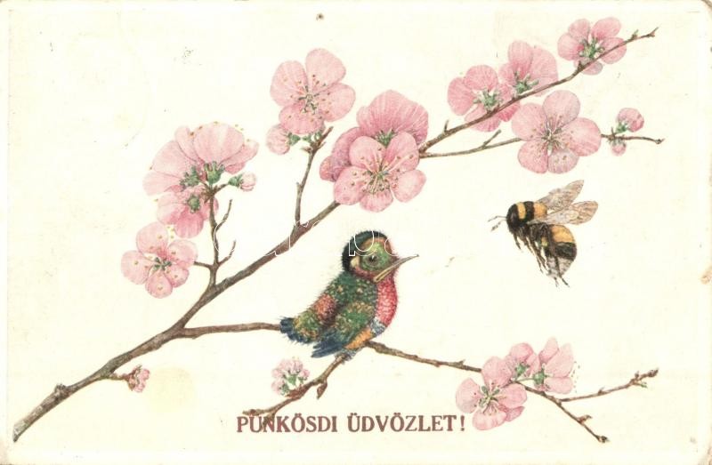Pünkösdi Üdvözlet! / Pentecost greeting art postcard, bird with bee. P... https://www.darabanth.com/de/322-Fernauktion/322.0/Ansichtskarten/GruC39Fkarten-Feste~2000096/Punkosdi-Udvozlet-Pentecost-greeting-art-postcard-bird-with-bee-Primus-WLB-03396-EK~II1742449
