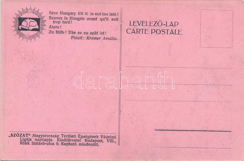 Segítsetek míg nem késő! kiadja Magyarország Területi Épségének Védelm... https://www.darabanth.com/de/322-Fernauktion/322.0/Ansichtskarten/Irredenta~2000055/Segitsetek-mig-nem-keso-kiadja-Magyarorszag-Teruleti-Epsegenek-Vedelmi-Ligaja-irredent~II1026978