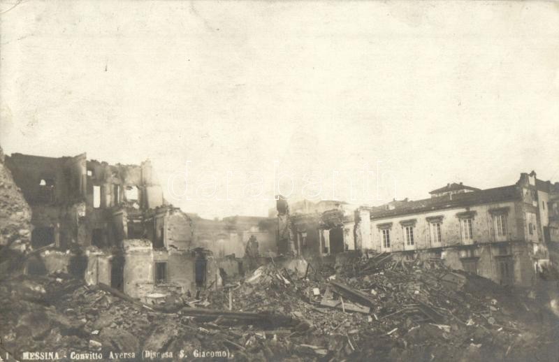 Messina, Convitta Aversa / ruins after the earthquake (EK) https://www.darabanth.com/de/322-Fernauktion/322.0/Ansichtskarten/Italien~2000081/Messina-Convitta-Aversa-ruins-after-the-earthquake-EK~II1733261