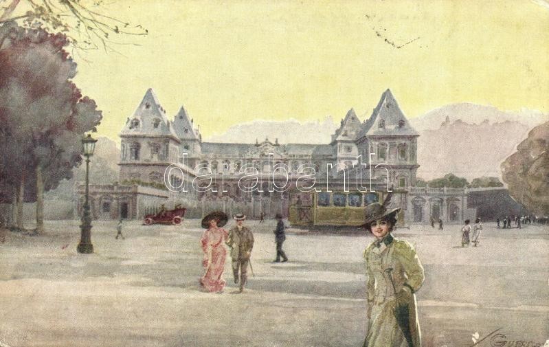 Beschreibung: Torino, Turin; Castello del Valentino dal Corso / castle, tram. Italian art postcard s: Guerzoni