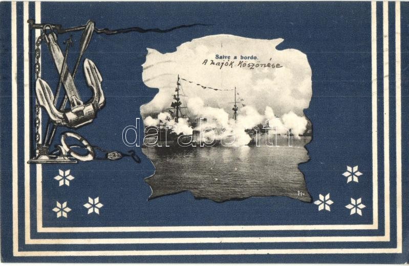 Salve a bordo / Osztrák-magyar haditengerészet díszes képeslapja vasma... https://www.darabanth.com/de/322-Fernauktion/322.0/Ansichtskarten/Kriegsschiffe~2000040/Salve-a-bordo-Osztrak-magyar-haditengereszet-diszes-kepeslapja-vasmacskaval-Kuk-Kriegsma~II1719240