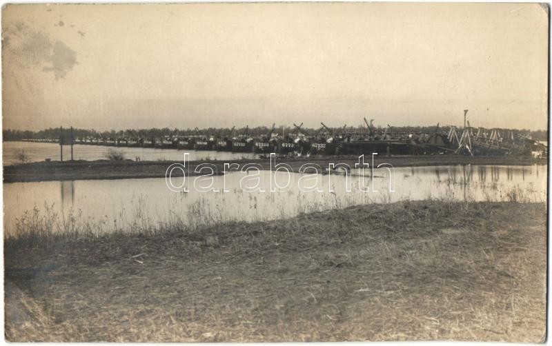 1915 Osztrák-magyar katonai hajóhíd (pontonhíd) DDSG uszályokkal Kevev... https://www.darabanth.com/de/322-Fernauktion/322.0/Ansichtskarten/Militaria~2000062/1915-Osztrak-magyar-katonai-hajohid-pontonhid-DDSG-uszalyokkal-Kevevaranal-WWI-Austro-Hu~II1788089
