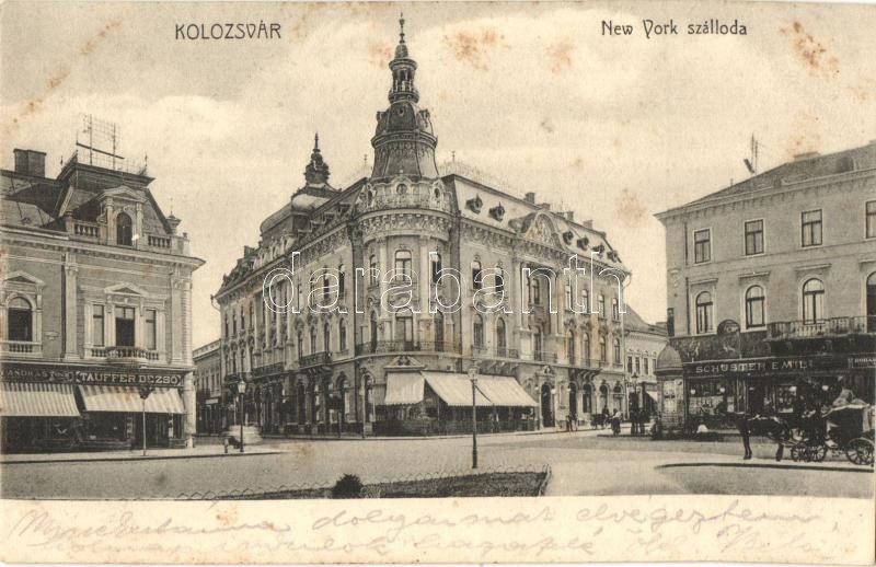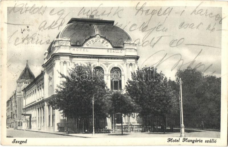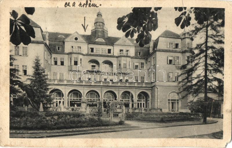 6 db régi városképes lap, szállodák: Kolozsvár (New York szálloda), Lillafüred (Palota szálló), Esztergom (Szent István fürdő szálloda), Parád (Erzsébet szálló), Szeged (Hungária szálló) / 6 pre-1945 town-view postcards, hotels: Cluj, Lillafüred, Esztergom, Parád, Szeged