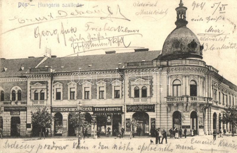 Dés, Dej; Hungária szálloda, Népbank, Thóroczy Kálmán, Rehák Ágoston, ... https://www.darabanth.com/de/322-Fernauktion/322.0/Ansichtskarten/Siebenburgen~2000007/Des-Dej-Hungaria-szalloda-Nepbank-Thoroczy-Kalman-Rehak-Agoston-Bako-Mihaly-uzlete~II1738844