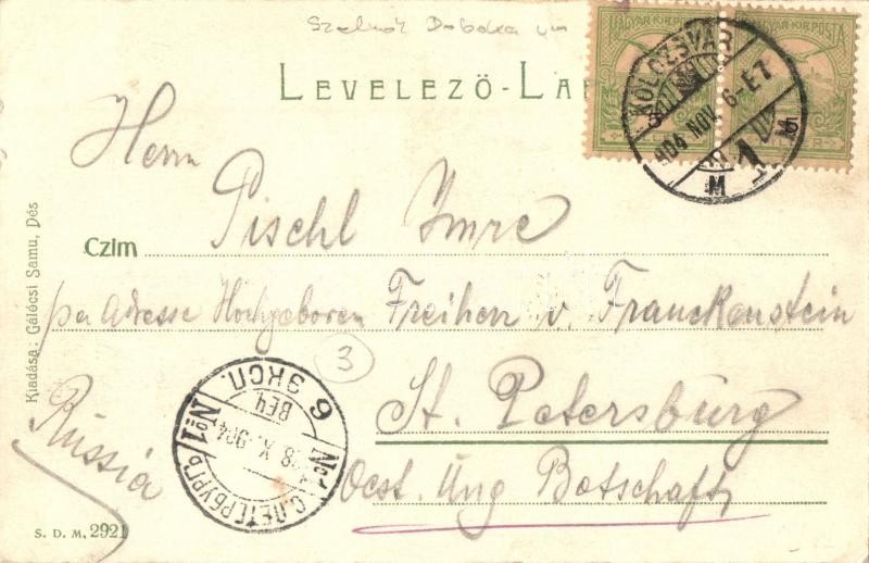 Beschreibung: Dés, Dej; Hungária szálloda, Népbank, Thóroczy Kálmán, Rehák Ágoston, Bakó Mihály üzletei. Gálócsi Samu kiadása / hotel, bank, shops (EK)