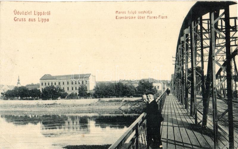 Lippa, Lipova; Maros folyó vashídja. W. L. (?) 3042. Kiadja Zeitler La... https://www.darabanth.com/de/322-Fernauktion/322.0/Ansichtskarten/Siebenburgen~2000007/Lippa-Lipova-Maros-folyo-vashidja-W-L-3042-Kiadja-Zeitler-Lajos-Eisenbrucke-uber-Mar~II1786026