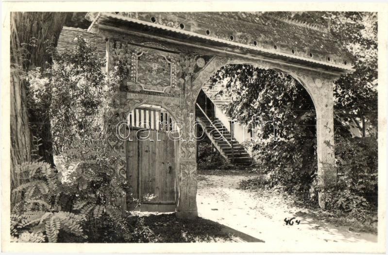 Beschreibung: Szejke, Seiche (Székelyudvarhely, Odorheiu Secuiesc); Székely Kapu, építette Orbán Balázs. Kováts István fényképész kiadása / Szekler gate