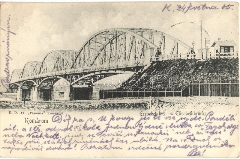 Komárom, Komárno; Erzsébet híd. E. D. 41. Pannonia / bridge https://www.darabanth.com/de/322-Fernauktion/322.0/Ansichtskarten/Slowakei~2000008/Komarom-Komarno-Erzsebet-hid-E-D-41-Pannonia-bridge~II1786938