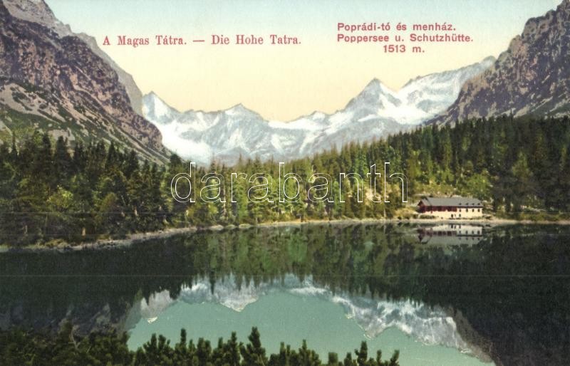 Tátra, Poprádi-tó, menház / lake, rest house https://www.darabanth.com/de/322-Fernauktion/322.0/Ansichtskarten/Slowakei~2000008/Tatra-Popradi-to-menhaz-lake-rest-house~II1742089