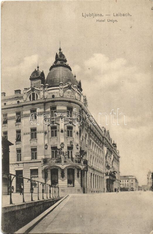 Ljubljana, Laibach; Hotel Union https://www.darabanth.com/de/322-Fernauktion/322.0/Ansichtskarten/Slowenien~2000099/Ljubljana-Laibach-Hotel-Union~II1784775