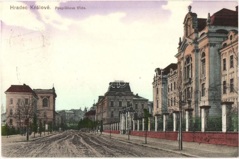 Hradec Králové, Pospisilova trída / street view https://www.darabanth.com/de/322-Fernauktion/322.0/Ansichtskarten/Tschechische-Republik~2000029/Hradec-Kralove-Pospisilova-trida-street-view~II1727439