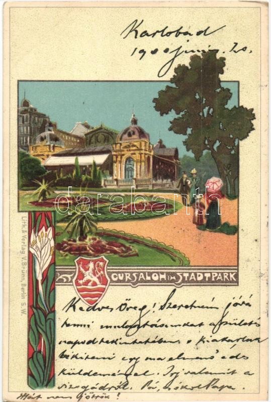 Karlovy Vary, Karlsbad; Cursalon im Stadtpark / spa in park. V. Brünn ... https://www.darabanth.com/de/322-Fernauktion/322.0/Ansichtskarten/Tschechische-Republik~2000029/Karlovy-Vary-Karlsbad-Cursalon-im-Stadtpark-spa-in-park-V-Brunn-Art-Nouveau-litho~II1727607