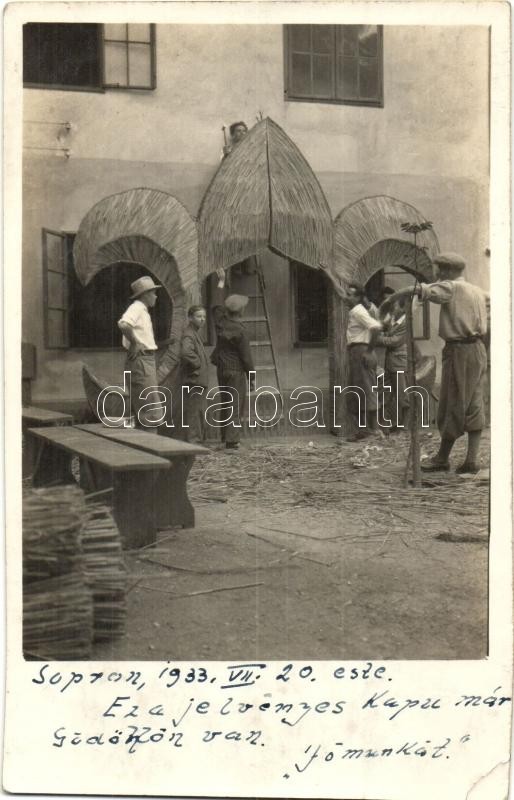 1933 Sopron, Oedenburg; Jelvényes kapu készül Gödöllőre, munkások, lét... https://www.darabanth.com/de/322-Fernauktion/322.0/Ansichtskarten/Ungarn~2000006/1933-Sopron-Oedenburg-Jelvenyes-kapu-keszul-Godollore-munkasok-letra-photo-EK~II1783041