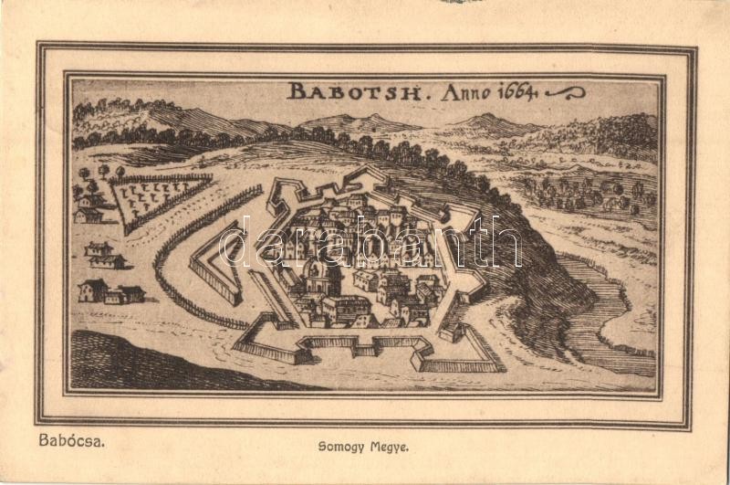 Babócsa, Babotsch Anno 1664. https://www.darabanth.com/de/322-Fernauktion/322.0/Ansichtskarten/Ungarn~2000006/Babocsa-Babotsch-Anno-1664~II1787227