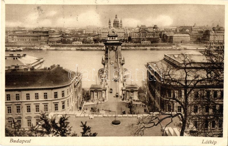 Budapest, látkép, Lánchíd, automobilok (EK) https://www.darabanth.com/de/322-Fernauktion/322.0/Ansichtskarten/Ungarn~2000006/Budapest-latkep-Lanchid-automobilok-EK~II1783442