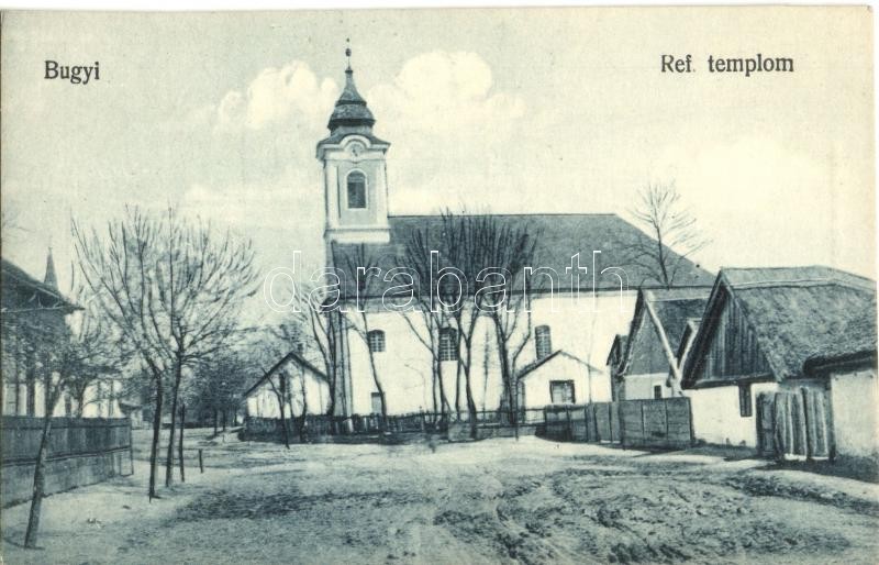 Bugyi, Református templom, utcakép. Fogyasztási Szövetkezet kiadása https://www.darabanth.com/de/322-Fernauktion/322.0/Ansichtskarten/Ungarn~2000006/Bugyi-Reformatus-templom-utcakep-Fogyasztasi-Szovetkezet-kiadasa~II1785850
