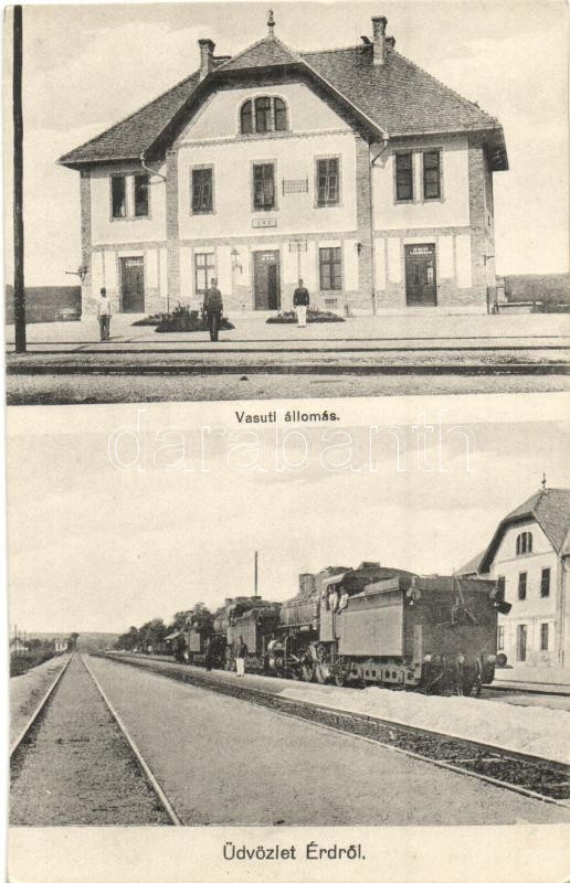 Érd, Vasútállomás, gőzmozdony, vagonok, vasutasok https://www.darabanth.com/de/322-Fernauktion/322.0/Ansichtskarten/Ungarn~2000006/Erd-Vasutallomas-gozmozdony-vagonok-vasutasok~II1785830