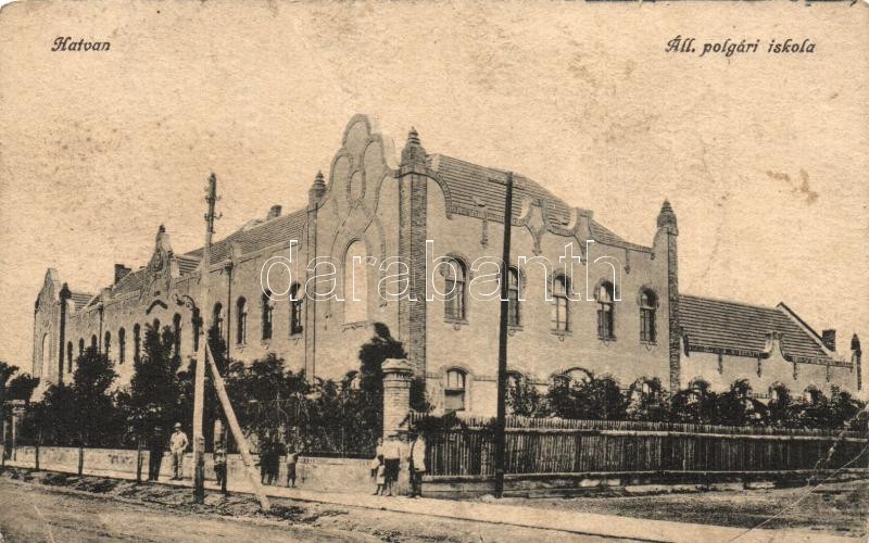 Hatvan, Állami polgári iskola (szakadás / tear) https://www.darabanth.com/de/322-Fernauktion/322.0/Ansichtskarten/Ungarn~2000006/Hatvan-Allami-polgari-iskola-szakadas-tear~II1756661