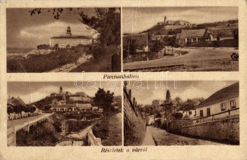 Pannonhalma, Részletek a várról, utcakép (EK) https://www.darabanth.com/de/322-Fernauktion/322.0/Ansichtskarten/Ungarn~2000006/Pannonhalma-Reszletek-a-varrol-utcakep-EK~II1743066