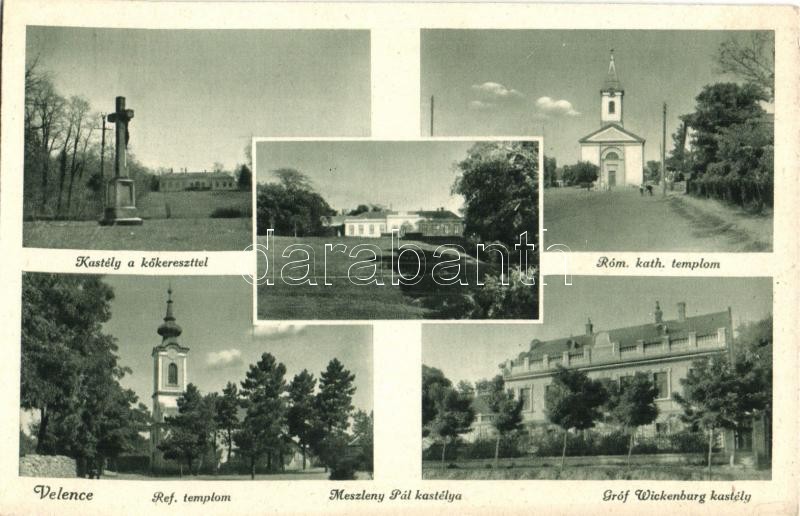Beschreibung: Velence, Meszlényi-Wenckheim kastély, Kőkereszt, Gróf Wickenburg kastély, Római katolikus templom, Református templom